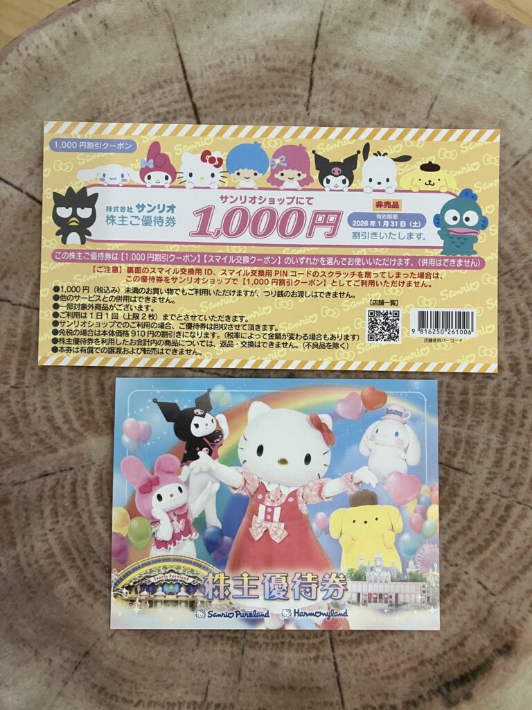 (1)サンリオピューロランドとハーモニーランドで使える優待入場券1枚