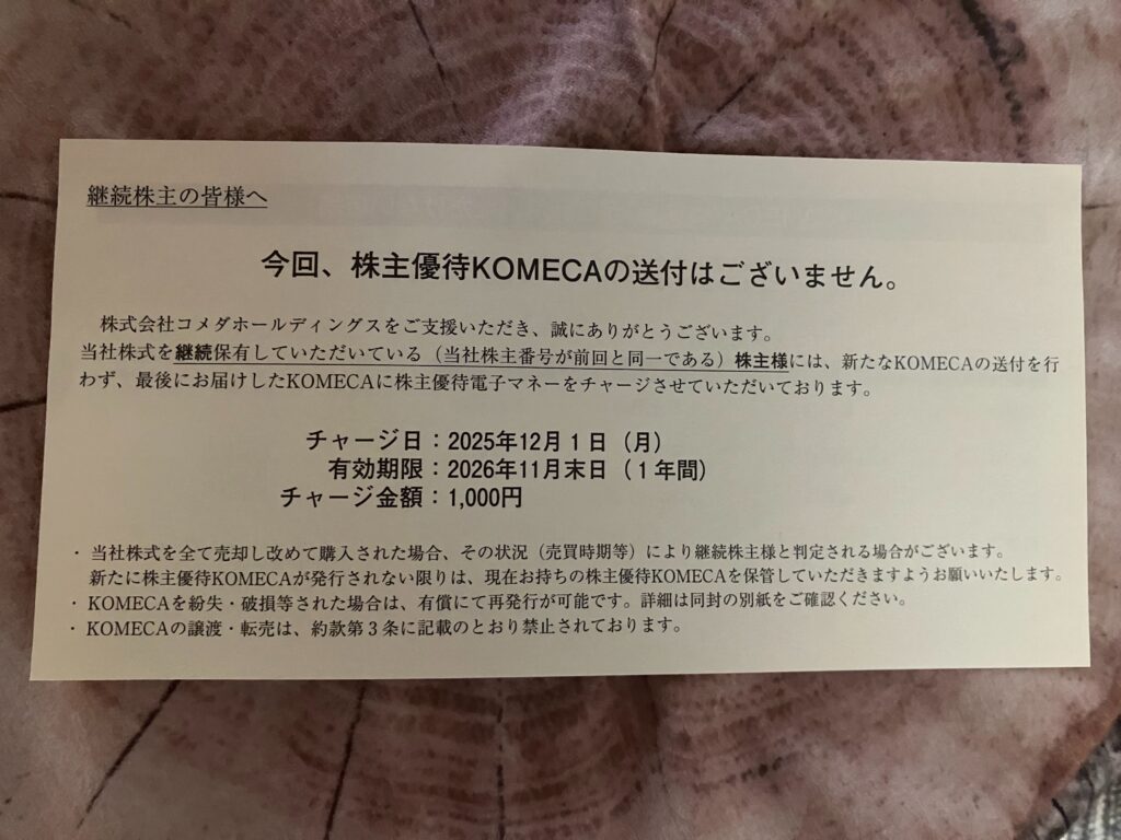100株でコメダ珈琲店で使える電子マネーKOMECA1,000円分となります。