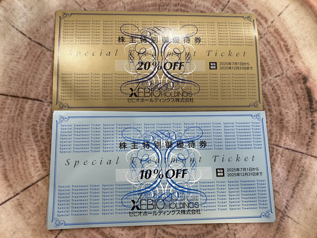 100株でお店で使える優待券の20%OFFが1枚、10%OFFが4枚もらえます。
